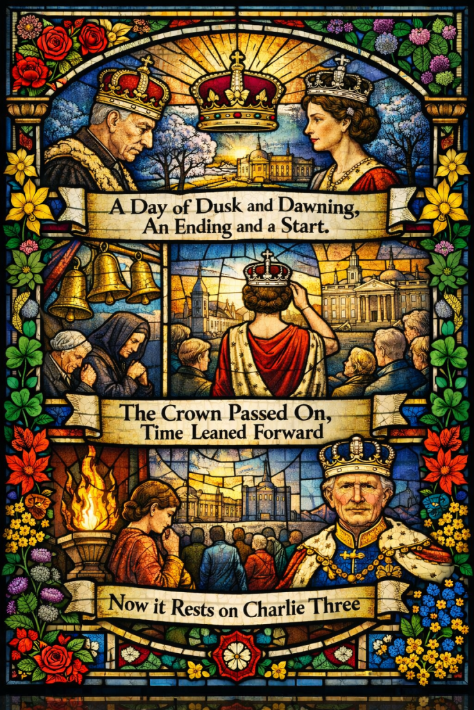 The poem was inspired by the moment when that long-held observance ceased. With the death of the Sovereign on 8 September 2022, the crown passed again—this time on a different day, already marked in the Christian calendar as the Nativity of Our Lady. A new reign began, and the sixth of February was released from its particular meaning.