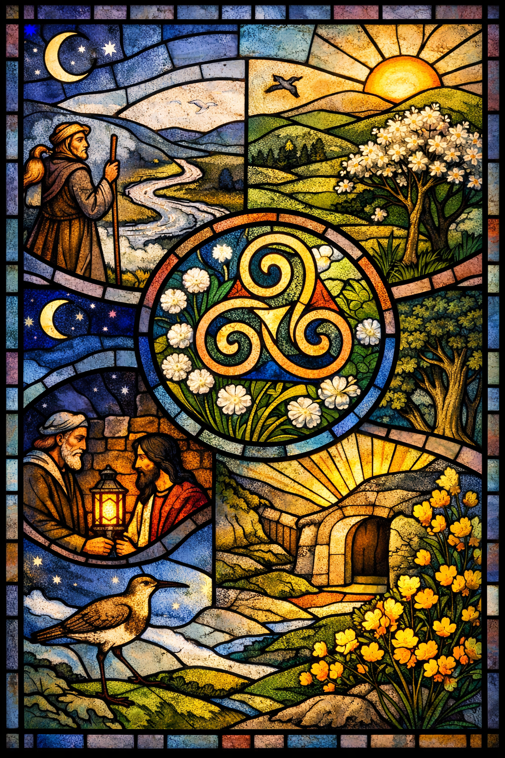 New birth through bog‑cotton you breathe, Through ash and ancient yew; The triskele’s turning speaks of life Made whole in breath from you.